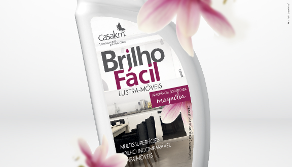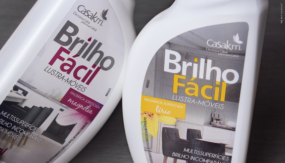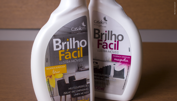 Para o lançamento do produto da linha Brilho Fácil, o lustra-móveis com duas opções de fragrâncias, o desenvolvimento visual da embalagem tinha como objetivo uma comunicação que se diferenciassem no PDV. Para garantir essa diferenciação, desenvolvemos “embalagens gêmeas”. O desenho do shape foi pensado, primeiramente, na facilidade da pega e do manuseio pelo consumidor. Por isso tem a base larga e o topo mais estreito, com reentrância para evitar que escorregue da mão. Depois, o desenvolvimento de cada rótulo para harmonizar os shapes foram pensados para ampliar a percepção do produto no PDV. As tampas coloridas facilitam a rápida identificação das fragrâncias do lustra-móveis.