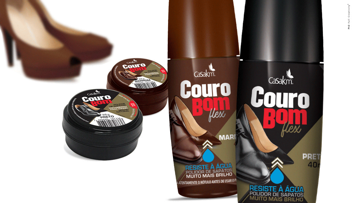 Como estratégia, a Casa KM resolveu reinventar um dos produtos mais tradicionais: o polidor de sapatos Tom Bom. Já de cara, a mudança foi de naming, que passou a ser Couro Bom. Nosso desafio? Como fazer esta mudança, sem perder a identidade e seus fiéis consumidores.