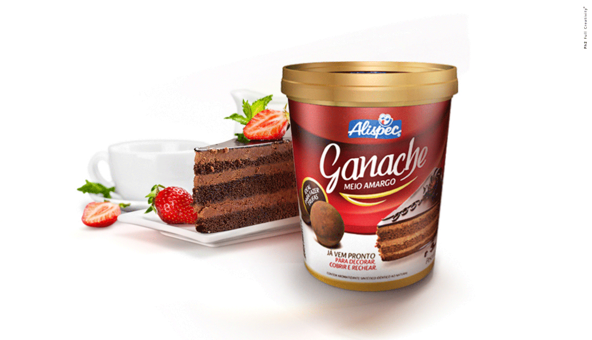 Já o produto Ganache Alispec apresenta soluções com o produto, aumentando o appetite appeal para o consumidor.